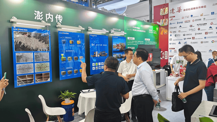 北京澎內(nèi)傳公司展出了全球領(lǐng)先的混凝土滲透結(jié)晶自愈合技術(shù)以及系統(tǒng)產(chǎn)品,展板上生動形象的展現(xiàn)出滲透結(jié)晶的技術(shù)原理、電鏡下的結(jié)晶形貌和實效工程照片等;實物水池模型與試塊直觀地看到結(jié)晶自愈合后的功效。澎內(nèi)傳先進(jìn)的滲透結(jié)晶科技不僅能從根本上解決混凝土結(jié)構(gòu)的滲漏水頑疾,還能提高混凝土整體的耐久性,延長結(jié)構(gòu)的使用壽命60年。產(chǎn)品低碳環(huán)保,為我國造就高質(zhì)量建筑和可持續(xù)發(fā)展的目標(biāo)提供堅實的技術(shù)基礎(chǔ)和科學(xué)的安全保障,更好的滿足人們對好房子的需求。